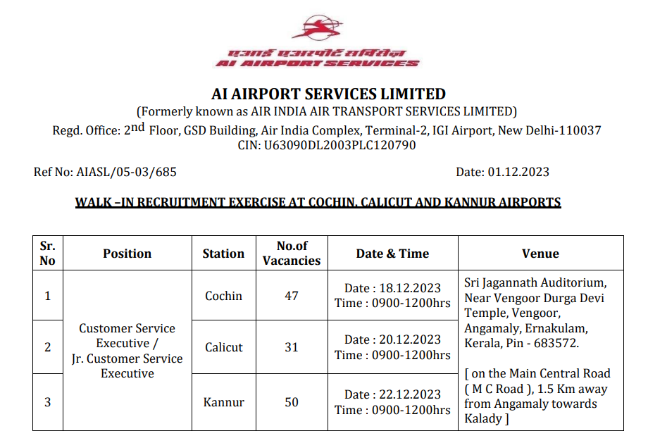 নিয়োগ সংস্থা AI AIRPORT SERVICES LIMITED