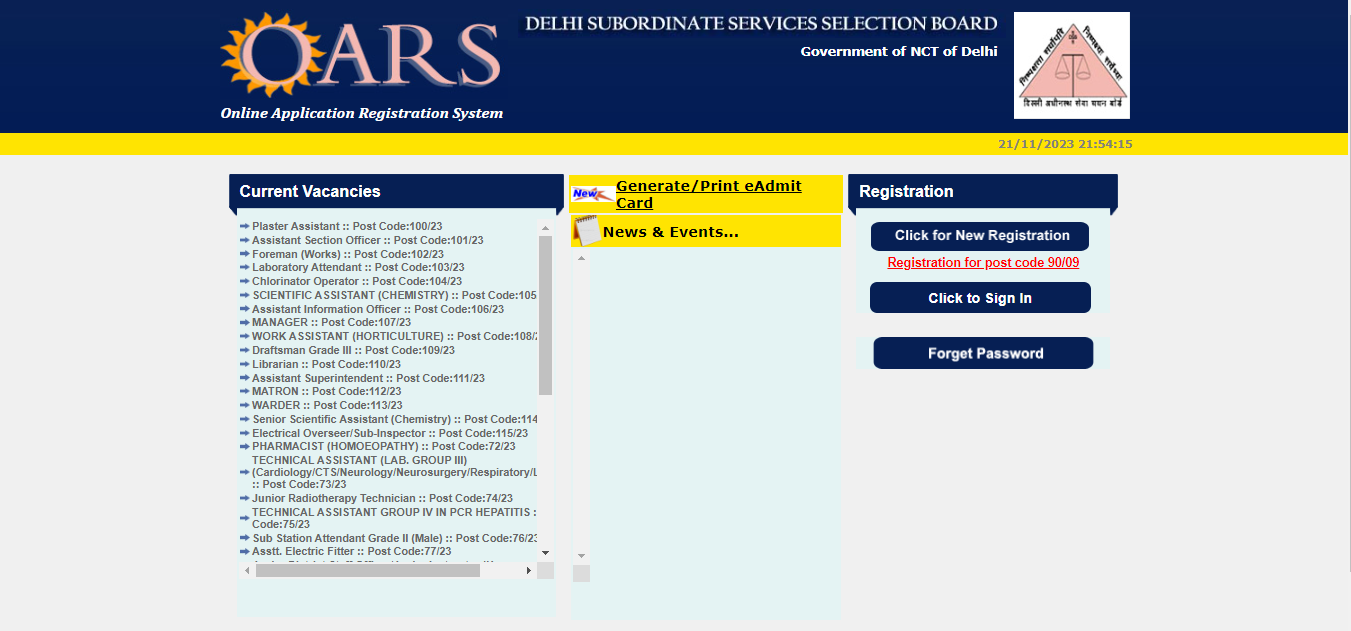 Click here for Online Application : https://dsssbonline.nic.in/Registration_NewForm.aspx