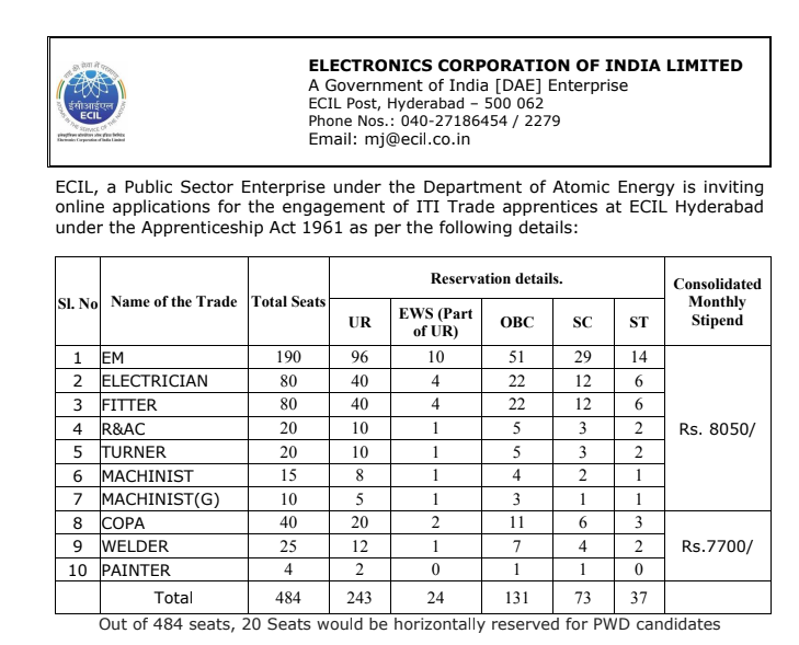 ECIL ITI ট্রেড শিক্ষানবিশ নিয়োগ _ নিয়োগের বিশদ বিবরণ