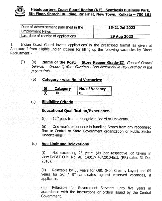 Indian Coast Guard Recruitment : ইন্ডিয়ান কোস্ট গার্ডে দেশব্যাপী বহু সংখ্যক শূন্যপদে কর্মী নিয়োগ করা হবে। এখানের পদগুলি গ্রুপ-C গ্রেডের।