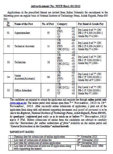 Click here for Recruitment Button : https://www.nitp.ac.in/jobsnitp/