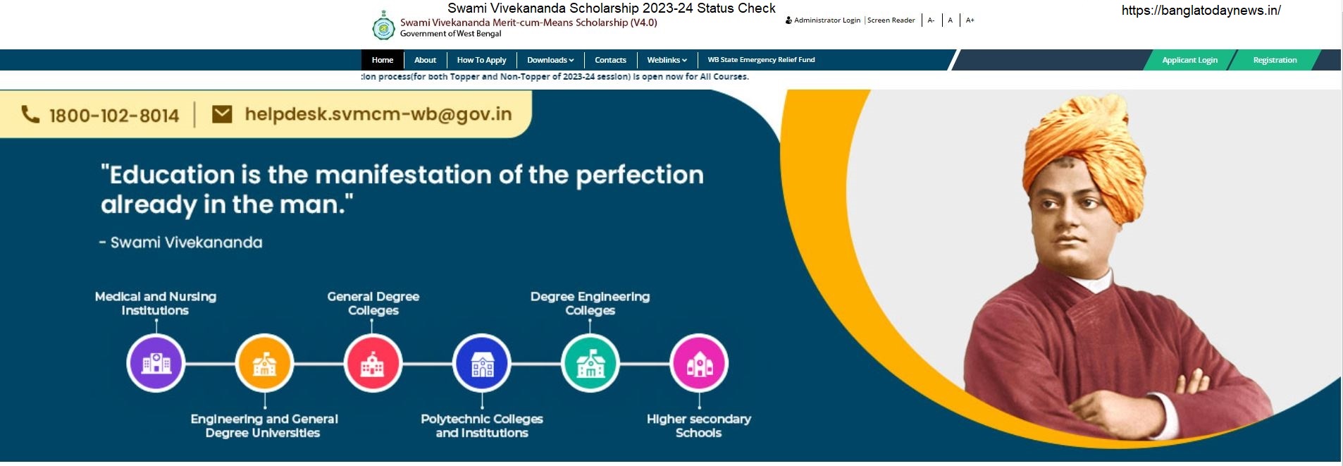 - স্বামী বিবেকানন্দ স্কলারশিপের অফিসিয়াল পোর্টালে যান, অন্যথায় https://svmcm.wbhed.gov.in/-এ যান।